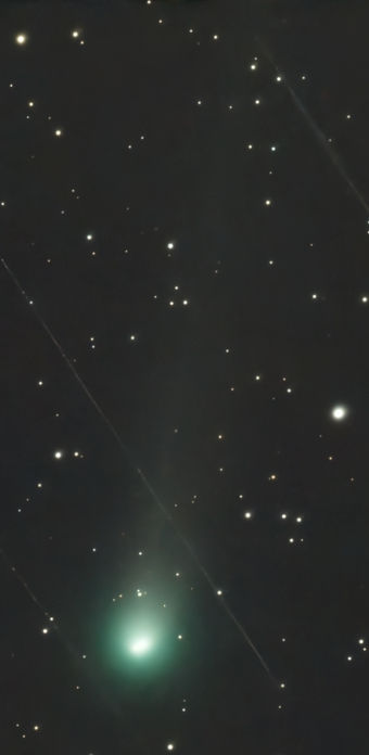 Der Kern von C/2025 K1 ATLAS hatte sich in der Zwischenzeit mehrfach geteilt. Auf dem Bild vom 18. Dezember ist nur noch Schweif erkennbar. Belichtungszeit: 11 Minuten
