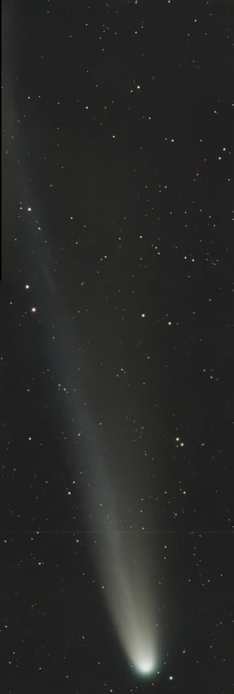 Die Aufnahme von Frank Vohla vom 21. Oktober zeigt einen nicht mehr so symmetrischen Schweif, wie auf früheren Bildern. Der Staubschweif krümmt sich nach rechts weg.