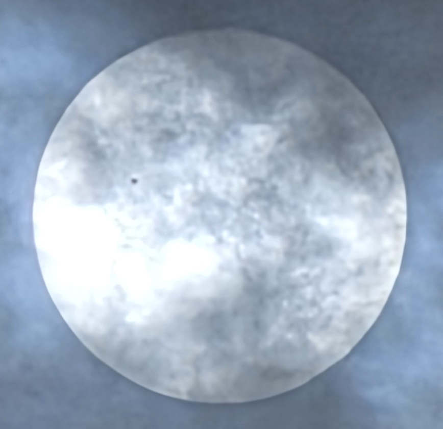 Der große Sonnenfleck ließ sich bei dünner Bewölkung mit dem Handy fotografieren.