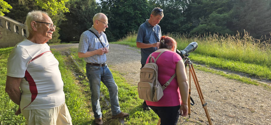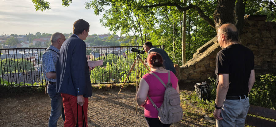 Wegen des späten Einbruchs der Dunkelheit im Ausstellungszeitraum vom 20.5. bis 10.8.2025 wurde eine Sonnenbeobachtung favorisiert und
