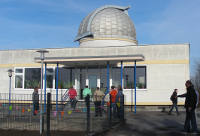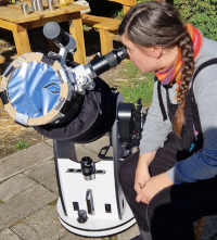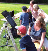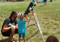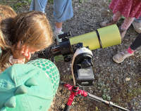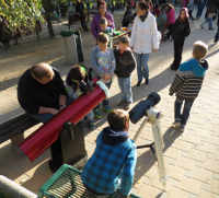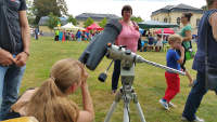 Besuchern Sonne, Mond und Jupiter im Fernrohr gezeigt.