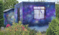 Bei einem Kreativ-Workshop mit Eva Weymann am 27./28. Juni 2025 wurden die beiden Lauben des Sternengartens mit Graffiti besprüht.