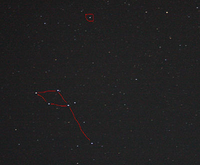 bewegte er sich durch Andromeda ins Dreieck. Die Helligkeit lag bei 8 mag.