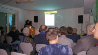 Unter dem Thema "Mit dem Fliegenden Salon der Kleingärten von Altenburg bis zum Rand des Universums" erläuterte er mit viel Humor die Entfernungen im Universum mit Beginn am Flugplatz, den er zum "Freiherr von Lindenau Space Center Altenburg - Nobitz"