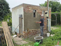 Mit dem Verputzen der Außenwände gingen am 10./11. Juni 2025 die Arbeiten an der Sternwarte weiter.