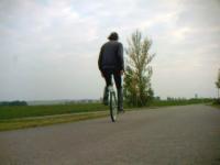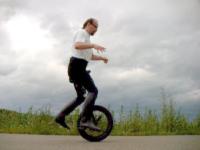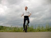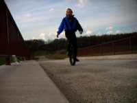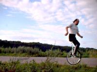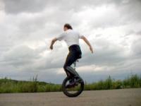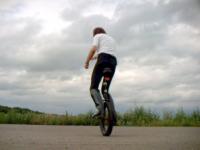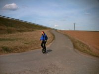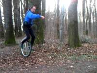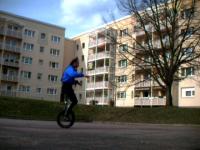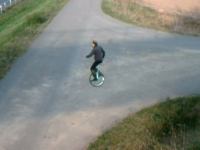 Fahrt hinterm Haus mit dem 26"-Einrad am 4.4.2004
