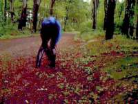 Waldweg vom fahrenden Einrad aus aufgenommen am 11. April 2006; 24,3 MByte