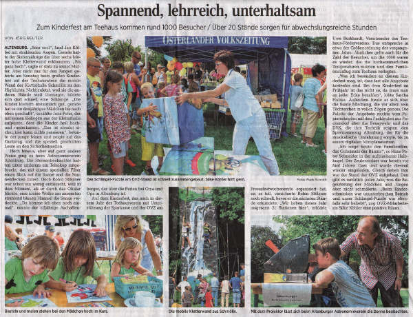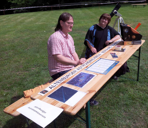 Am 10. August beteiligte sich der Altenburger Astronomieverein Bernhard Schmidt zum zweiten mal in am des Teehaus-Vereins. Das Wetter war schön, im Schnitt 4/8 Cumulus. Das Fest war sehr gut organisiert. Der uns zugewiesene Platz passte und eine Biertischgarnitur wurde bereitsgestellt.