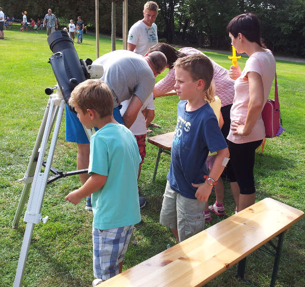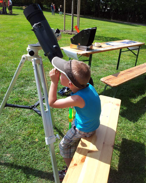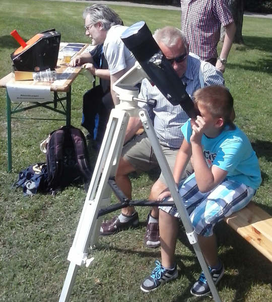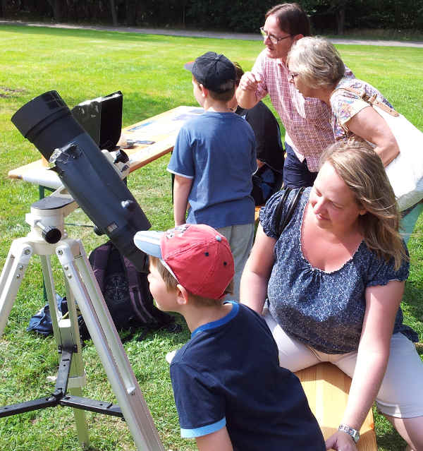 Die Kinder waren begeistert vom Anblick der Sonne im Fernrohr.