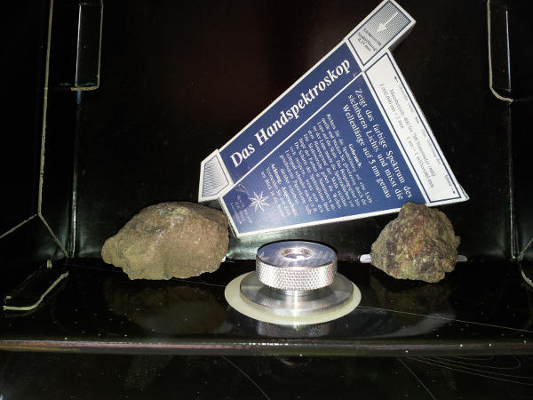 Ein Problem waren kräftige Windböen. Der leichte Projektor musste mit Steinen beschwert werden, damit er nicht wegfliegt. Außerdem diente er als Ablage für ein Handspektroskop.