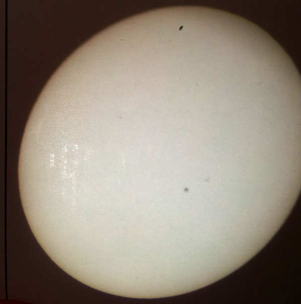 Der visuelle Eindruck war besser. Auf diesem Foto ist die Filterfolie vor Haupt- und Nebenobjektiv zu sehen.