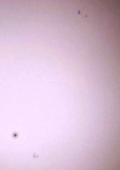 Auf dem Handyfoto sind die Flecken einigermaßen gut zu sehen. Bessere Technik stand nicht zur Dokumentation zu Verfügung.