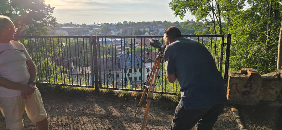Als die Sonne hinter Bäumen zu versinken drohte, wurde der Standort zur Bastei am Rand der Teehauswiese verlegt.
