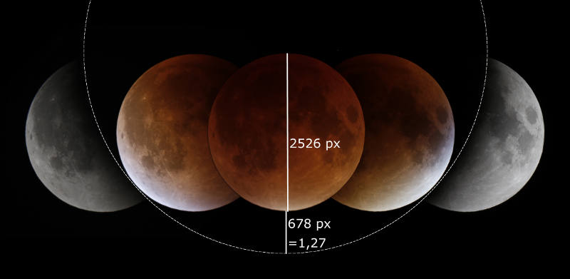 Aus seinen Aufnahmen bestimmte er den Radius des Erdschattens auf 1,27 Monddurchmesser.