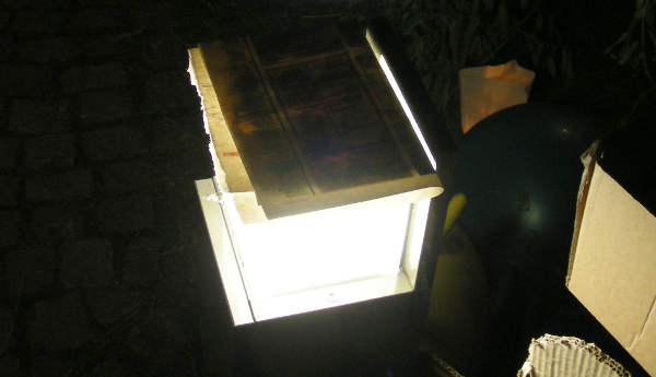 Zeitungen, die zum Einpacken von Schmuckbriketts bereitlagen, dienten danach der Bekämpfung von Lichtverschmutzung. Diese Maßnahme verbesserte die Sicht im Eingangsbereich des Mauritianums.