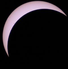 | 15:13; 1/400 s Eine Miunte vor dem 4.Kontakt ziehen dünne Wolken durch. |