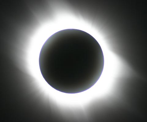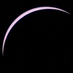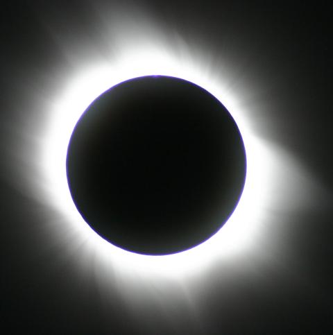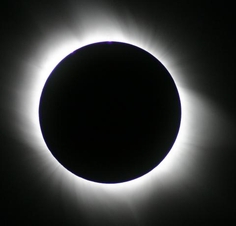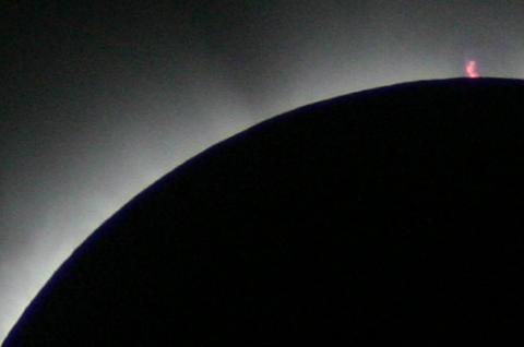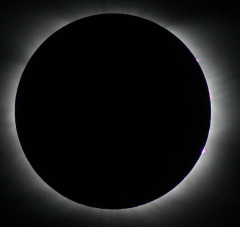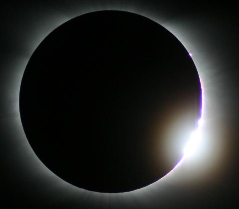Das Ende der Totalität naht. Jetzt sind die Protuberanzen auf der rechten Seite deutlich sichtbar.