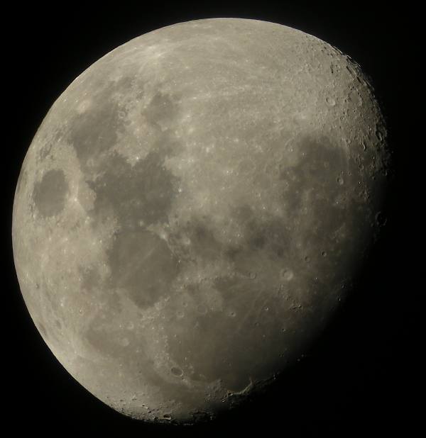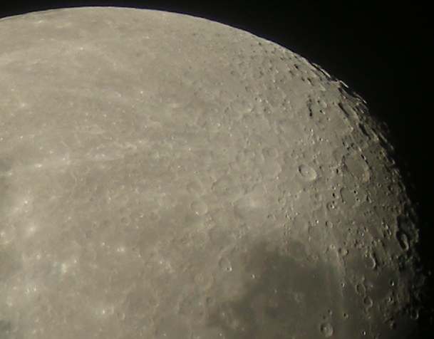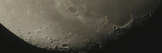 Beispiel für ein Mondfoto am 40mm-Okular am Hofheim-Dobson 300/1500, aufgenommen mit einer Nikon S10